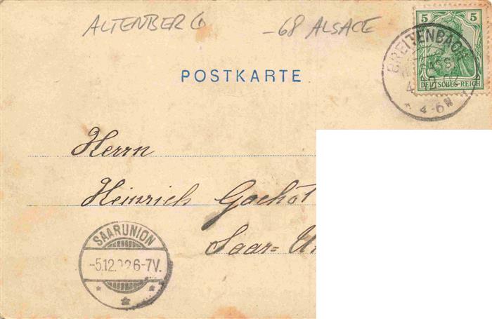 13974140 Altenberg Bergheim 68 Haut-Rhin Alsace Hotel Altenberg im Winter postalisch gelaufen Erhaltung siehe scans [FriedD77] carte postale Frie Katcode 11170068568028