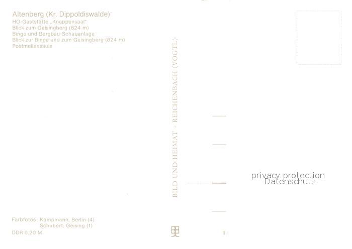 73062331 Altenberg Dippoldiswalde HO Gaststaette Knappensaal Geisingberg Binge Bergbau Schauanlage postalisch nicht gelaufen Erhaltung siehe scans [KathaD81] KatCode: 11110014290010