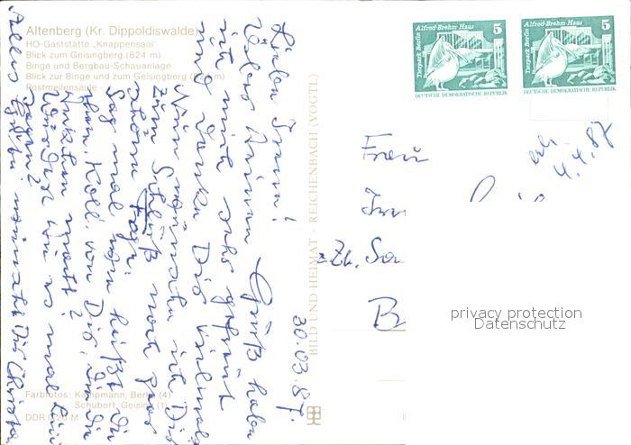 72409666 Altenberg Dippoldiswalde Restaurant Knappensaal Geisingberg Postmeilensaeule postalisch nicht gelaufen Erhaltung siehe scans KatCode: 11110014290010