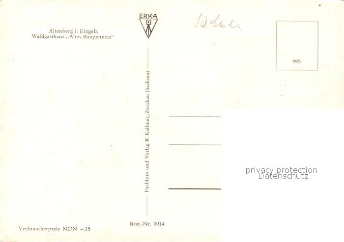 73077014 Altenberg Dippoldiswalde Waldgasthaus Altes Raupennest postalisch nicht gelaufen Erhaltung siehe scans [KathaD81] KatCode: 11110014290010