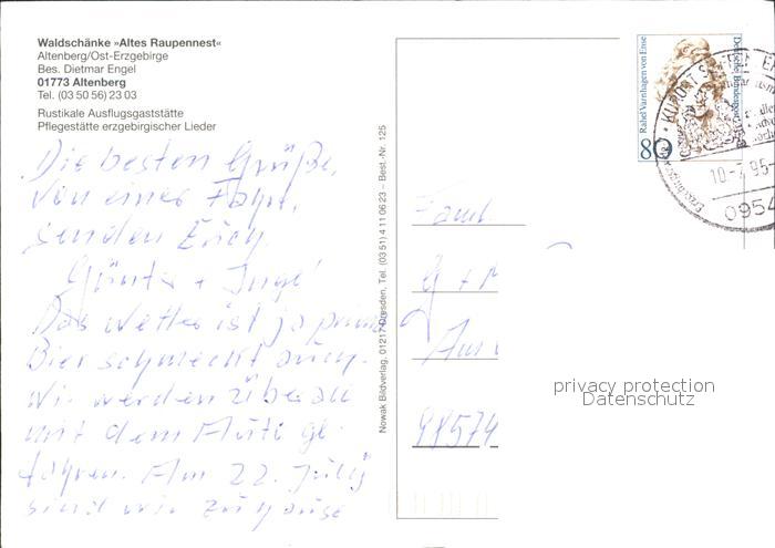72181236 alte Postkarte Altenberg Dippoldiswalde Waldschaenke Altes Raupennest postalisch gelaufen Erhaltung siehe scans KatCode: 11110014290010