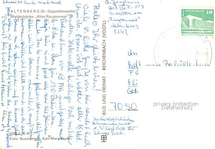 73292823 alte Postkarte Altenberg Dippoldiswalde Waldschaenke Altes Raupennest postalisch gelaufen Erhaltung siehe scans [LiesaD40] KatCode: 11110014290010