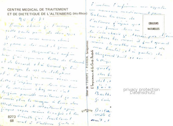 12651903 Altenberg Elsass Centre Medical de Traitement et de Dietetique postalisch nicht gelaufen Erhaltung siehe scans [WerneD78] KatCode: 11170068568028