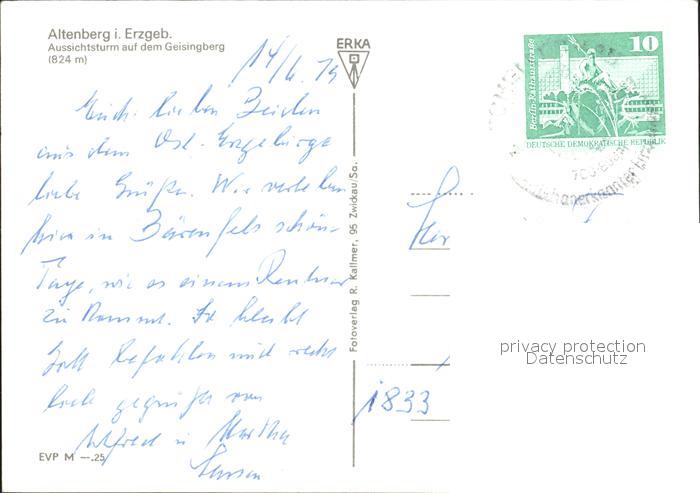 72335882 alte Postkarte Altenberg Erzgebirge Aussichtsturm auf dem Geisingberg postalisch gelaufen Erhaltung siehe scans KatCode: 11110014290140