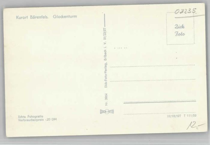 40215854 Altenberg Erzgebirge Baerenfels Glockenturm ungelaufen ca. 1930 KatCode 11110014290140
