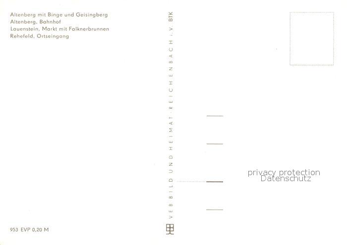 73305243 Altenberg Erzgebirge Binge und Geisingberg Bahnhof Lauenstein Markt Falknerbrunnen Rehefeld Ortseingang Landschaftspanorama postalisch nicht gelaufen Erhaltung siehe scans [FriedD77] KatCode: 11110014290140