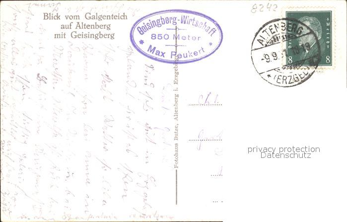 72100953 alte Postkarte Altenberg Erzgebirge Blick vom Galgenteich mit Geisingberg postalisch gelaufen KatCode: 11110014290140