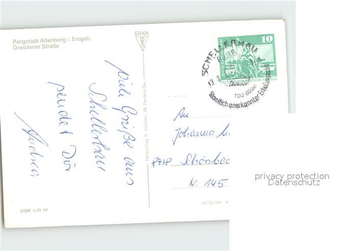 72037167 alte Postkarte Altenberg Erzgebirge Dresdener Strasse postalisch gelaufen Erhaltung siehe scans KatCode: 11110014290140