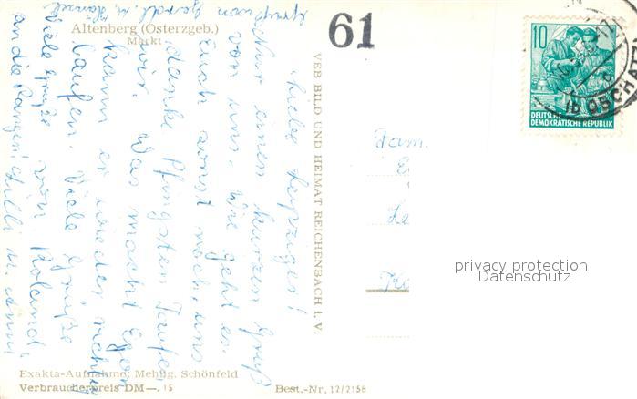 33612176 alte Postkarte Altenberg Erzgebirge Marktplatz Denkmal postalisch gelaufen Erhaltung siehe scans [FriedD77] KatCode: 11110014290140