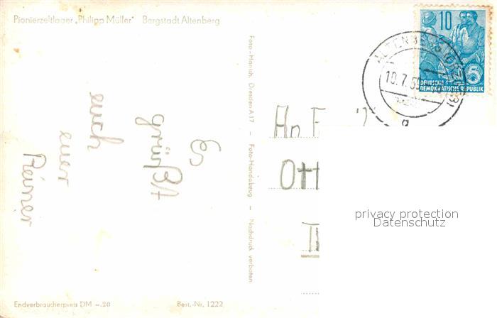 32657174 alte Postkarte Altenberg Erzgebirge Pionierzeltlager Philipp Mueller postalisch gelaufen Erhaltung siehe scans [AndreD76] KatCode: 11110014290140