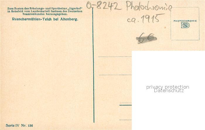 73697789 Altenberg Erzgebirge Rauschermuehlen- Teich postalisch nicht gelaufen Erhaltung siehe scans [LiesaD40] KatCode: 11110014290140
