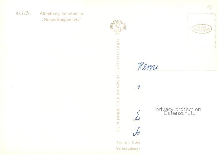 73294636 Altenberg Erzgebirge Sanatorium Neues Raupennest postalisch nicht gelaufen Erhaltung siehe scans [LiesaD40] KatCode: 11110014290140