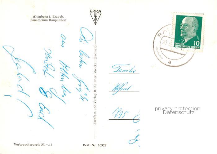 73125142 alte Postkarte Altenberg Erzgebirge Sanatorium Raupennest postalisch gelaufen Erhaltung siehe scans [PaolaD17] KatCode: 11110014290140