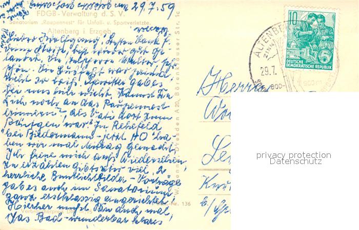 73045394 alte Postkarte Altenberg Erzgebirge Sanatorium Raupennest postalisch gelaufen Erhaltung siehe scans [PaolaD17] KatCode: 11110014290140