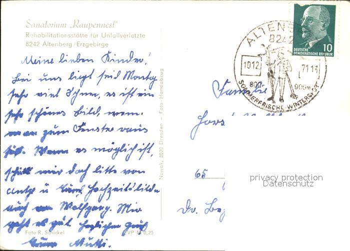 alte Postkarte Altenberg Erzgebirge Sanatorium Raupennest postalisch gelaufen Erhaltung siehe scans