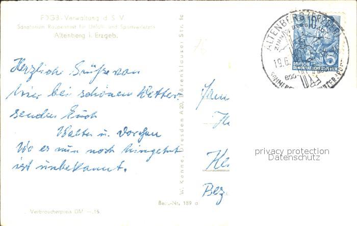 72365764 alte Postkarte Altenberg Erzgebirge Sanatorium Raupennest postalisch gelaufen Erhaltung siehe scans KatCode: 11110014290140