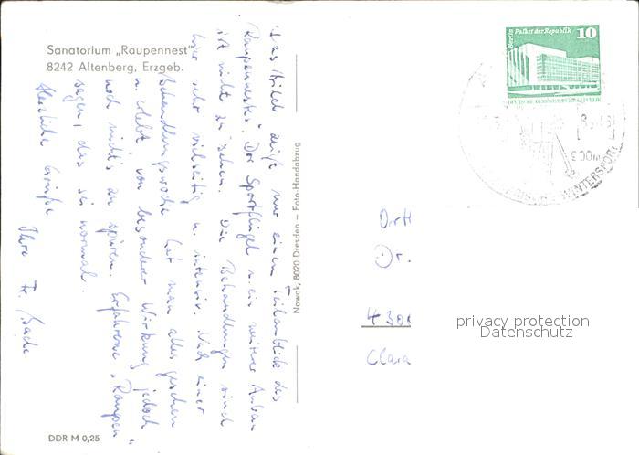 71942069 alte Postkarte Altenberg Erzgebirge Sanatorium Raupennest postalisch gelaufen Erhaltung siehe scans KatCode: 11110014290140