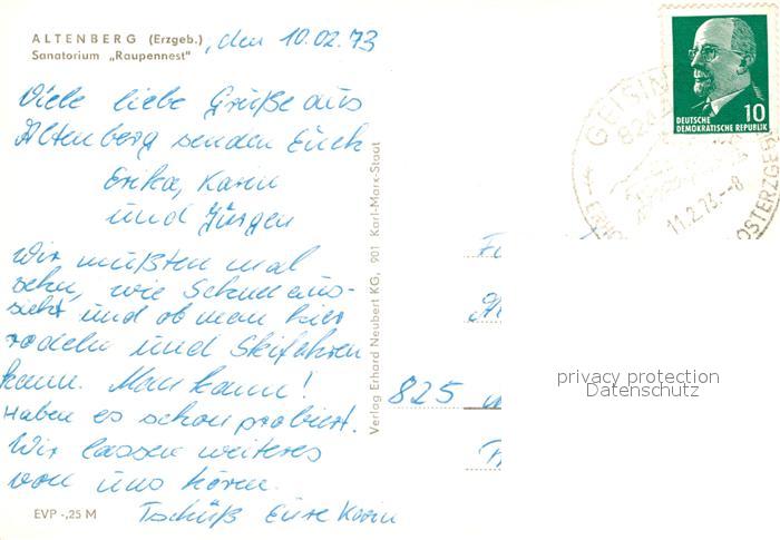 72940708 alte Postkarte Altenberg Erzgebirge Sanatorium Raupennest Winterlandschaft postalisch gelaufen Erhaltung siehe scans [FriedD77] KatCode: 11110014290140