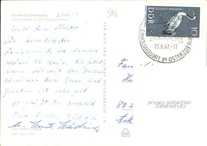 71982540 alte Postkarte Altenberg Erzgebirge Schwimmbad Galgenteichen postalisch gelaufen Erhaltung siehe scans KatCode: 11110014290140