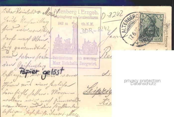 42364652 alte Postkarte Altenberg Erzgebirge Unterkunftshaus mit Luisenturm auf dem Geisingberg postalisch gelaufen Erhaltung siehe scans KatCode: 11110014290140