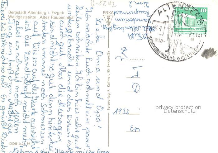 72925812 alte Postkarte Altenberg Erzgebirge Waldgaststaette Altes Raupennest postalisch gelaufen Erhaltung siehe scans [PaolaD17] KatCode: 11110014290140