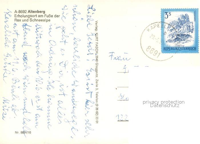 73653188 alte Postkarte Altenberg Rax Erholungsort am Fusse der Rax und Schneealpe postalisch gelaufen Erhaltung siehe scans [FriedD77] KatCode: 11390223061302