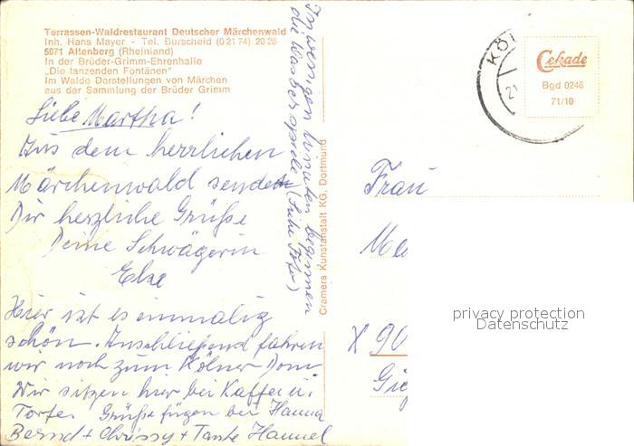 71998802 alte Postkarte Altenberg Rheinland Deutscher Maerchenwald Waldrestaurant postalisch gelaufen Erhaltung siehe scans KatCode: 11110005378020