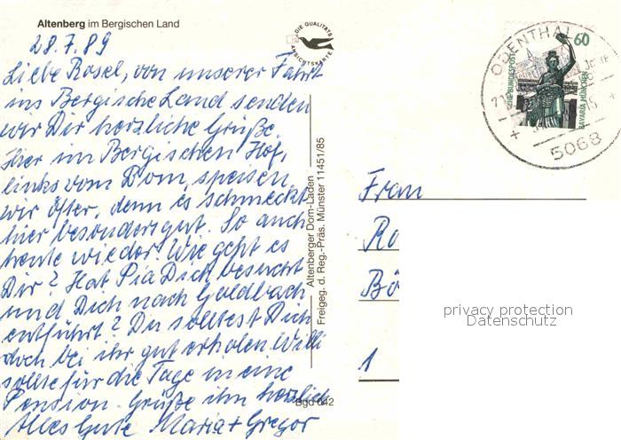 72888963 alte Postkarte Altenberg Rheinland Fliegeraufnahme postalisch gelaufen Erhaltung siehe scans [AndreD76] KatCode: 11110005378020