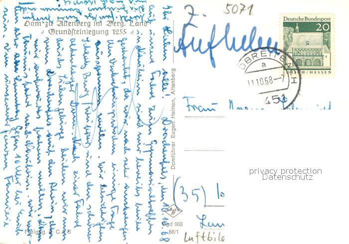 73694497 alte Postkarte Altenberg Rheinland Fliegeraufnahme Dom postalisch gelaufen Erhaltung siehe scans [LiesaD40] KatCode: 11110005378020