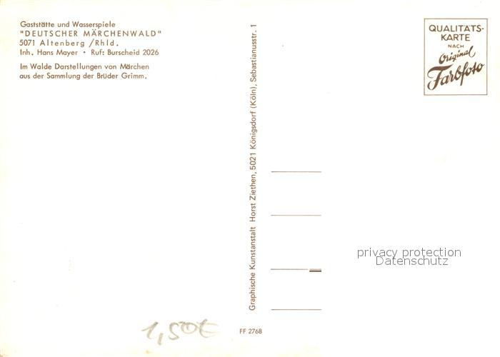 73103961 Altenberg Rheinland Gaststaette Deutscher Maerchenwald Wasserspiele postalisch nicht gelaufen Erhaltung siehe scans [WerneD78] KatCode: 11110005378020