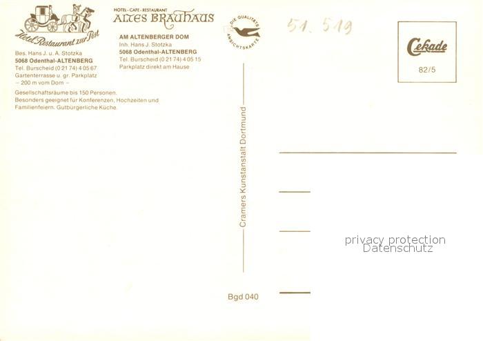 73664816 Altenberg Rheinland Hotel Cafe Restaurant Altes Brauhaus Gastraeume Terrasse postalisch nicht gelaufen Erhaltung siehe scans [WerneD78] KatCode: 11110005378020