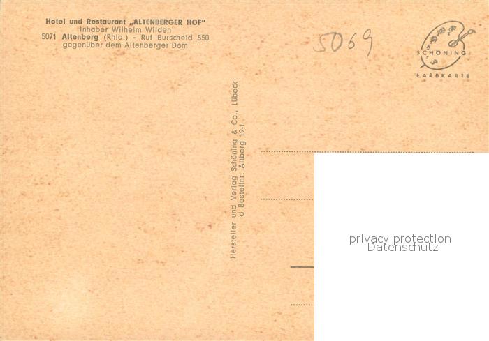 73641149 Altenberg Rheinland Hotel Restaurant Altenberger Hof postalisch nicht gelaufen Erhaltung siehe scans [WerneD78] KatCode: 11110005378020