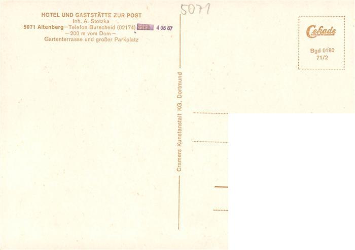 73894346 Altenberg Rheinland Hotel Restaurant Zur Post postalisch nicht gelaufen Erhaltung siehe scans [WerneD78] KatCode: 11110005378020