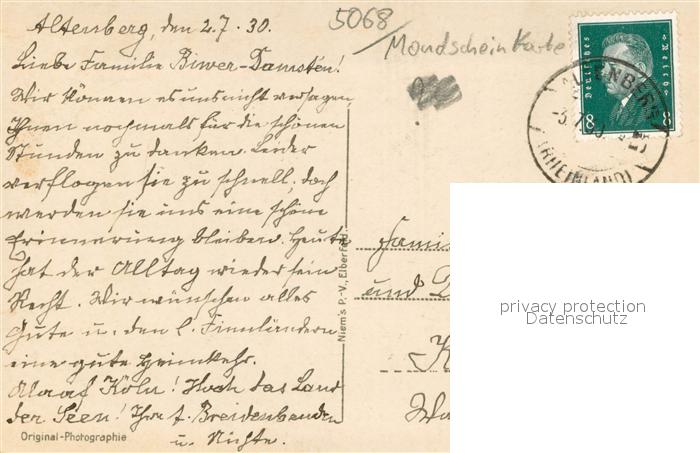 73690303 alte Postkarte Altenberg Rheinland Mondscheinkarte Dom postalisch gelaufen Erhaltung siehe scans [LiesaD40] KatCode: 11110005378020