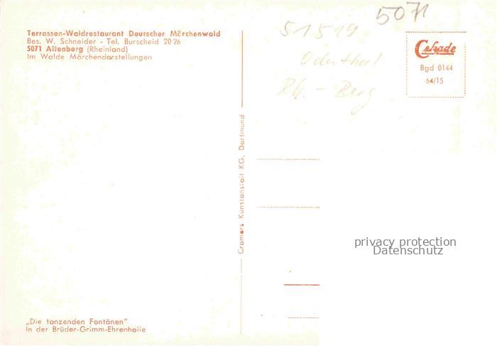 74043199 Altenberg Rheinland Odenthal NRW Terrassen Waldrestaurant Deutscher Maerchenwald Saal postalisch nicht gelaufen Erhaltung siehe scans [WerneD78] KatCode: 11110005378020