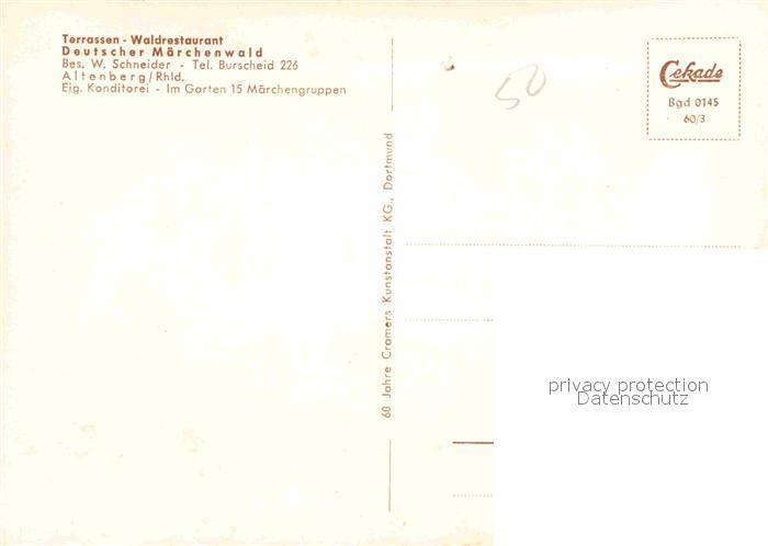 72868302 Altenberg Rheinland Restaurant Deutscher Maerchenwald postalisch nicht gelaufen Erhaltung siehe scans [LiesaD40] KatCode: 11110005378020