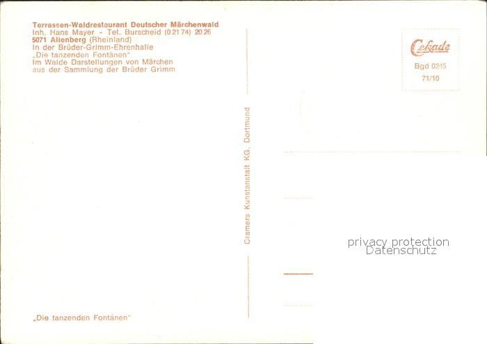 72131225 Altenberg Rheinland Restaurant und Wasserspiele Deutscher Maerchenwald postalisch nicht gelaufen Erhaltung siehe scans KatCode: 11110005378020