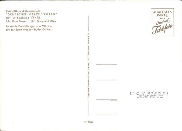 72131224 Altenberg Rheinland Restaurant und Wasserspiele Deutscher Maerchenwald postalisch nicht gelaufen Erhaltung siehe scans KatCode: 11110005378020