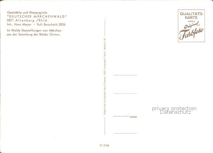 72131226 Altenberg Rheinland Restaurant und Wasserspiele Deutscher Maerchenwald postalisch nicht gelaufen KatCode: 11110005378020