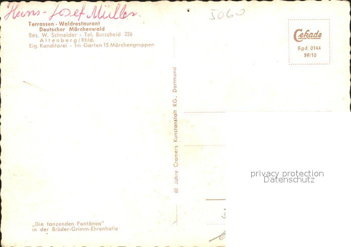 72170375 Altenberg Rheinland Terrassen-Waldrestaurant Deutscher Maerchenwald postalisch nicht gelaufen Erhaltung siehe scans KatCode: 11110005378020