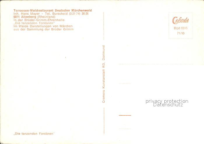 72092705 Altenberg Rheinland Terrassen Waldrestaurant Deutscher Maerchenwald postalisch nicht gelaufen Erhaltung siehe scans KatCode: 11110005378020