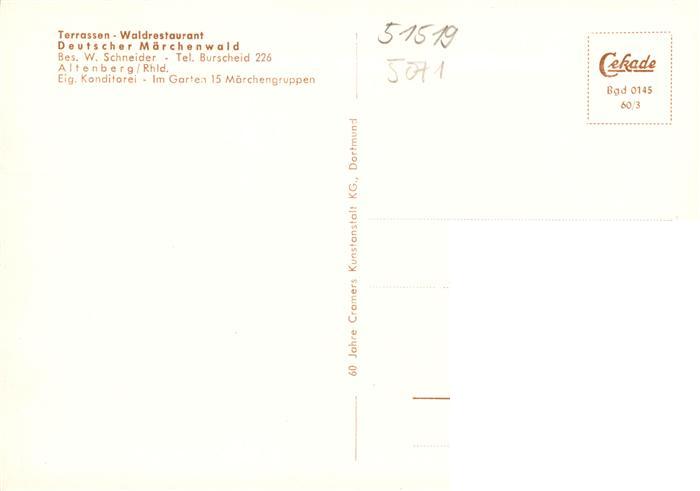 73884039 Altenberg Rheinland Terrassen Waldrestaurant Deutscher Maerchenwald postalisch nicht gelaufen Erhaltung siehe scans [FriedD77] KatCode: 11110005378020