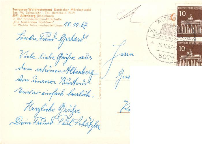 73877549 alte Postkarte Altenberg Rheinland Terrassen Waldrestaurant Deutscher Maerchenwald postalisch gelaufen Erhaltung siehe scans [WerneD78] KatCode: 11110005378020