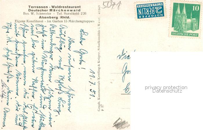 73694806 Altenberg Rheinland Terrassen-Waldrestaurant Deutscher Maerchenwald Schneewittchen postalisch nicht gelaufen Erhaltung siehe scans [LiesaD40] KatCode: 11110005378020
