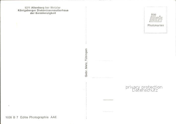 72136400 Altenberg Wetzlar Koenigsberger Diakonnissenmutterhaus postalisch nicht gelaufen Erhaltung siehe scans KatCode: 11110006532023
