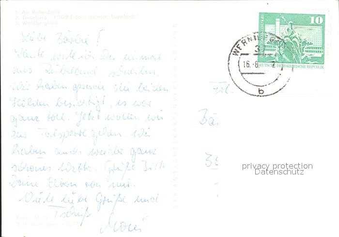 72051109 alte Postkarte Altenbrak Harz Am Roandseck Treseburg FDGB Erholungsheim Luppbode Waldbergbad postalisch gelaufen Erhaltung siehe scans KatCode: 11110015085015