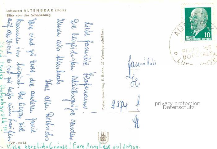 72731362 alte Postkarte Altenbrak Harz Blick von der Schoeneburg postalisch gelaufen Erhaltung siehe scans [LiesaD40] KatCode: 11110015085015