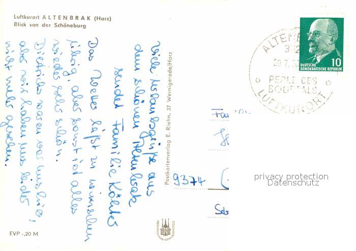 72731363 alte Postkarte Altenbrak Harz Blick von der Schoeneburg postalisch gelaufen Erhaltung siehe scans [LiesaD40] KatCode: 11110015085015