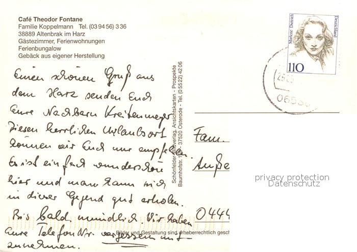 73169209 alte Postkarte Altenbrak Harz Cafe Theodor Fontane postalisch gelaufen Erhaltung siehe scans [KathaD81] KatCode: 11110015085015