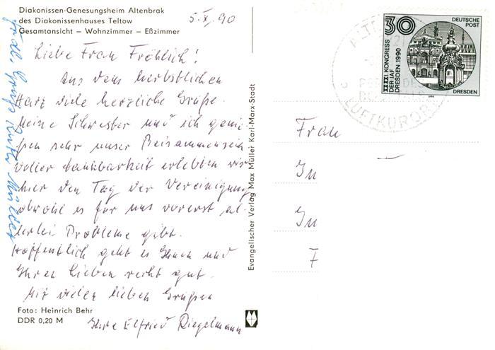 73947186 alte Postkarte Altenbrak Harz Diakonissen Genesungsheim des Diakonissenhauses Teltow Wohnzimmer Esszimmer postalisch gelaufen Erhaltung siehe scans [WerneD78] KatCode: 11110015085015
